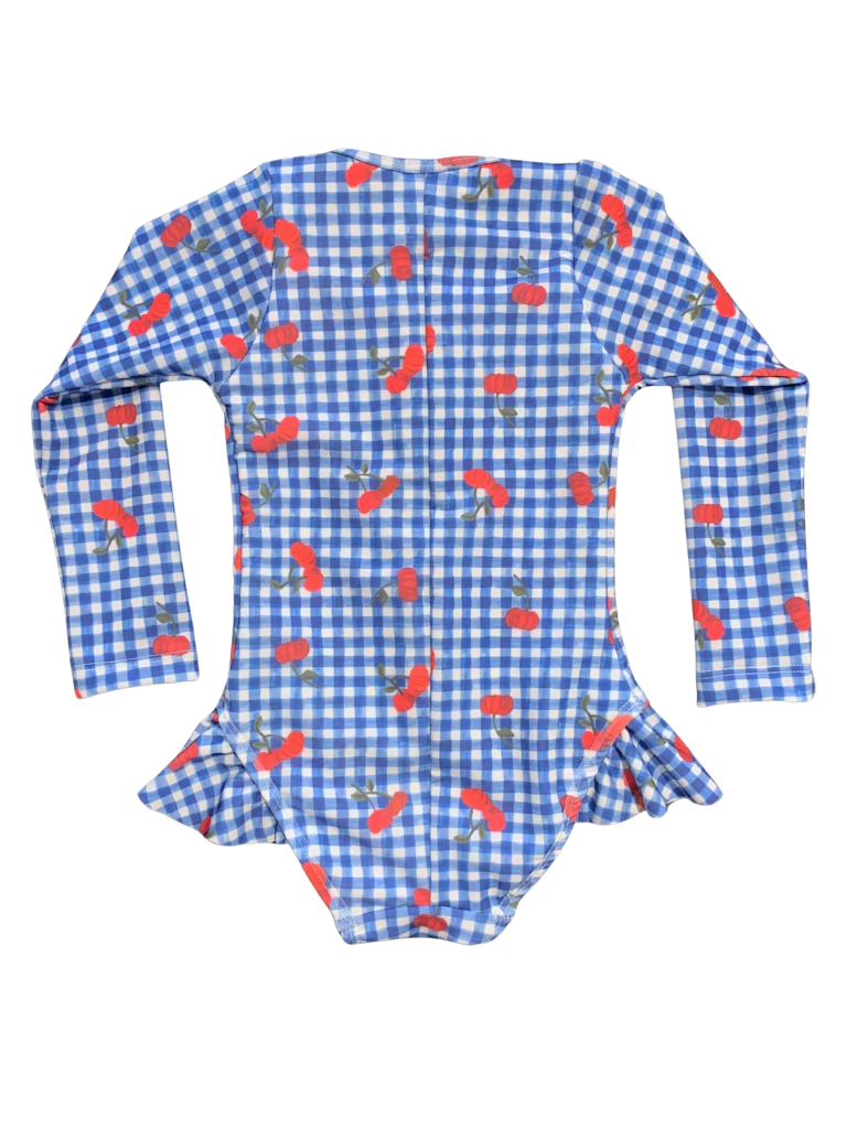Traje de baño con manga larga, con protección UV, ideal para proteger a las peques del sol, evitando un paso de protectro solar, con un volado tan sweetie y elegante que enamora!
