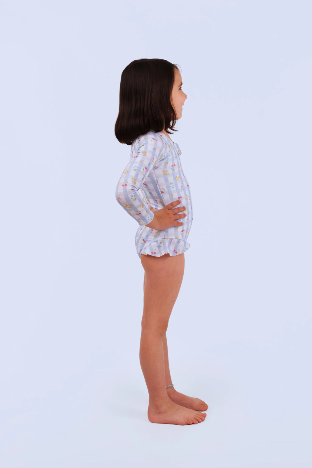 Traje de baño con manga larga, con protección UV, ideal para proteger a las peques del sol, evitando un paso de protectro solar, con un volado tan sweetie y elegante que enamora!