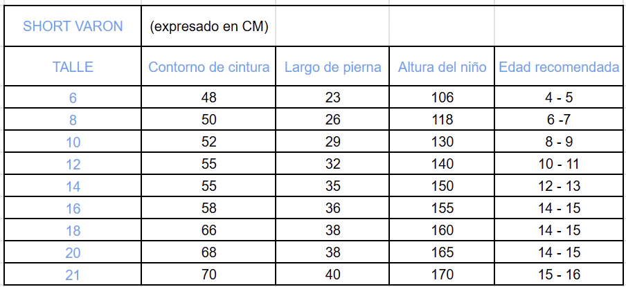 Guía de talles