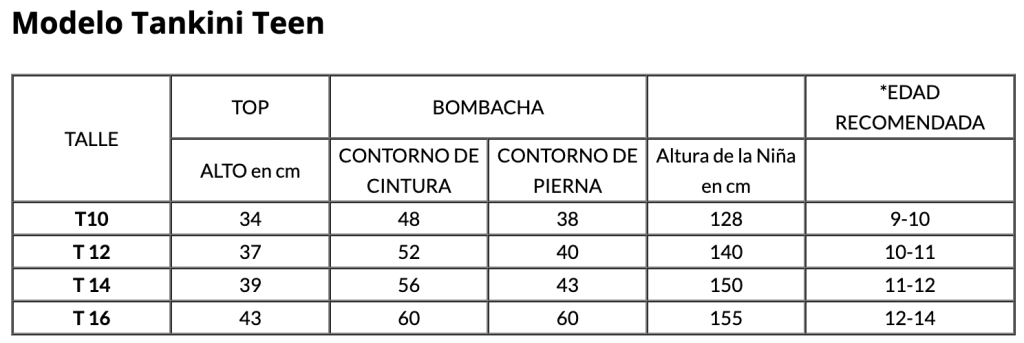 Guía de talles